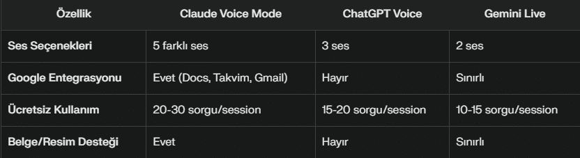 Anthropic, Claude’u sesli asistanlar dünyasına taşıyarak rekabette önemli bir hamle yaptı. Özellikle Google Workspace entegrasyonu, iş dünyası için cazip hale getiriyor. Ancak, Türkçe dil desteği ve API erişimi olmaması, kullanımı şimdilik sınırlı tutuyor.