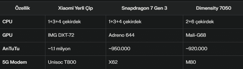 - Maliyet Avantajı: Yerli üretimle birlikte, Qualcomm lisans ücretleri ve dışa bağımlılık azalacak. Bu da Xiaomi’nin fiyat-performans odaklı modellerinde fiyat avantajı sağlayacak.